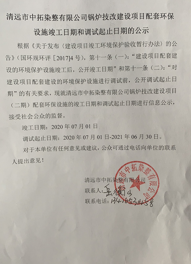 下一頁(yè): 清遠市中拓染整有限公司鍋爐技改建設項目配套環(huán)保設施竣工日期和調試起止日...